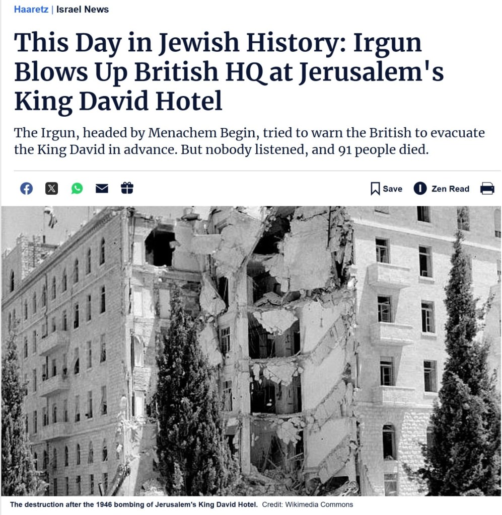 Irgun Blows Up British HQ at Jerusalem’s King David Hotel 79 years ago.